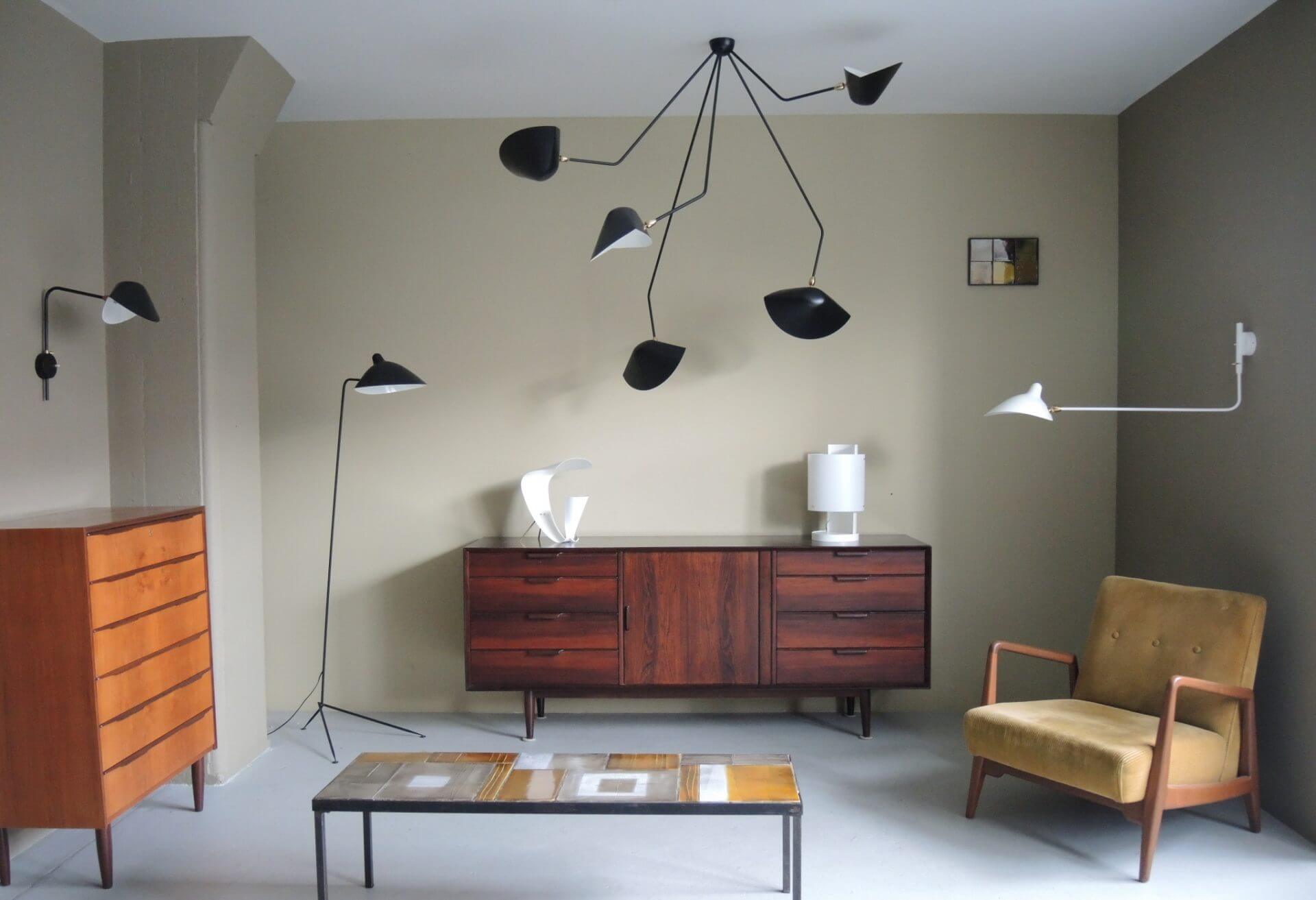 In 2002, Guéridon introduced authentic Serge Mouille Re-edition Lighting to the U.S. market and remains the definitive source of these iconic examples of French Modernist design.